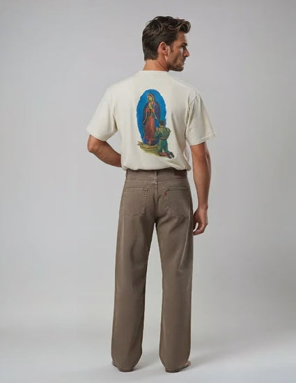 - Camiseta de corte oversize, confeccionada con algodón premium de 200 g/m². Para que le quede amplia y holgada, se recomienda escoger una talla más a la habitual.