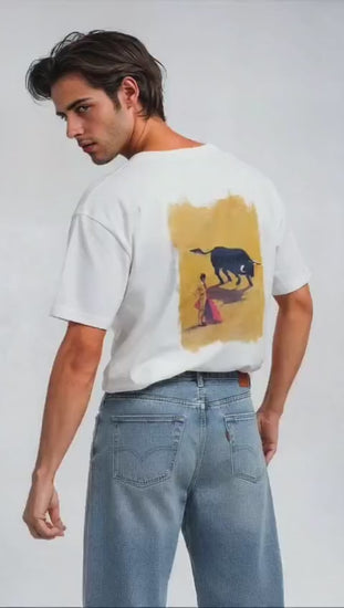 - Camiseta de corte oversize, confeccionada con algodón premium de 200 g/m². Para que le quede amplia y holgada, se recomienda escoger una talla más a la habitual.